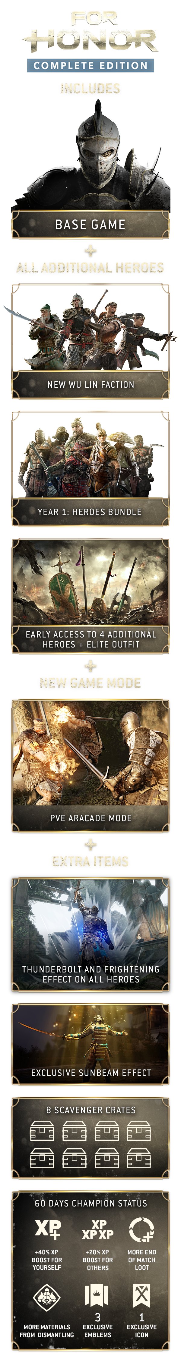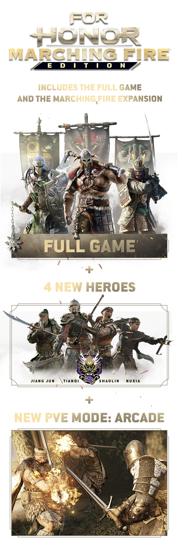 Includes the For Honor® base game, plus Marching Fire™ Expansion.