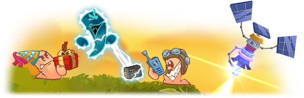 - Crafting: No more waiting around while your opponents take their turns! Grab the crafting crates that drop from the sky during games to make fiendishly upgraded versions of items such as the Electric Sheep, the Bazooka Pie and the Holy Mine Grenade to unleash on your enemies!