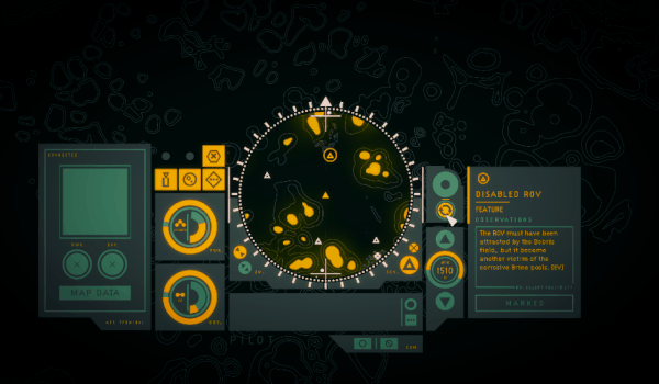 Navigate an elegant, intuitive UI via gamepad or mouse controls. Interpret signals, set headings, and map the ocean through experimentation and intuition.