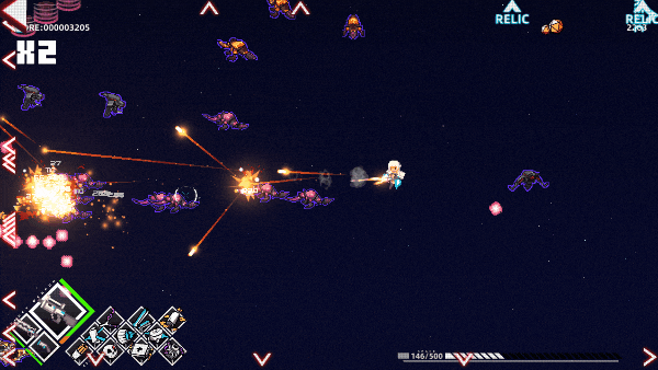 - This game has barrage element instead of a barrage STG, and if the player has a combo,they won't die in one hit.